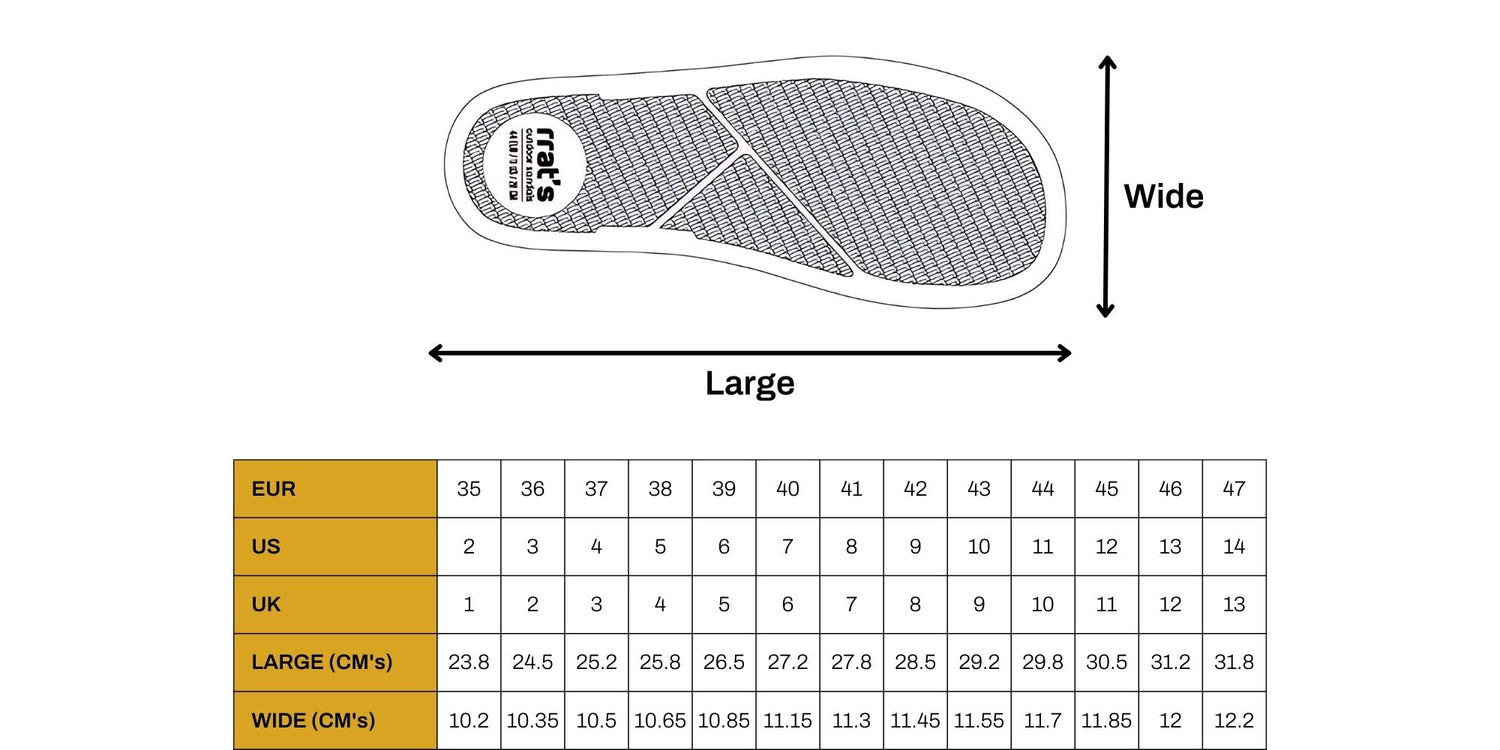 - Put the two parts together and place your foot on top of the insole (heel on the dotted line). Your toes will fit a size; the larger size indicated is your size!